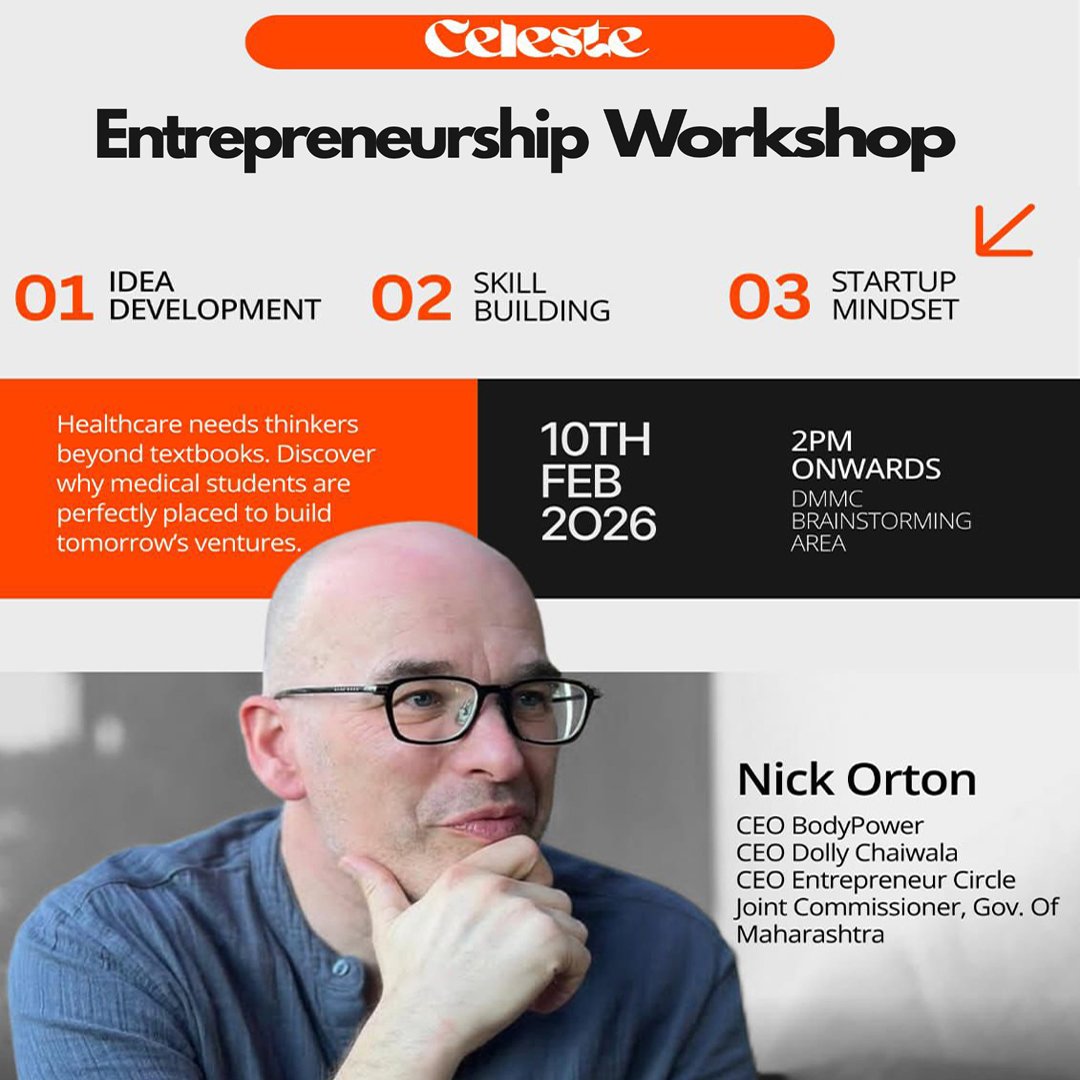 DMMC CELESTE 2026 - Entrepreneurship workshop- Why medical students are at the right place at right time, Speaker – Nick Orton, CEO Entrepreneur Circle, Joint Commissioner Gov Of Maharashtra.